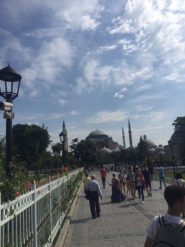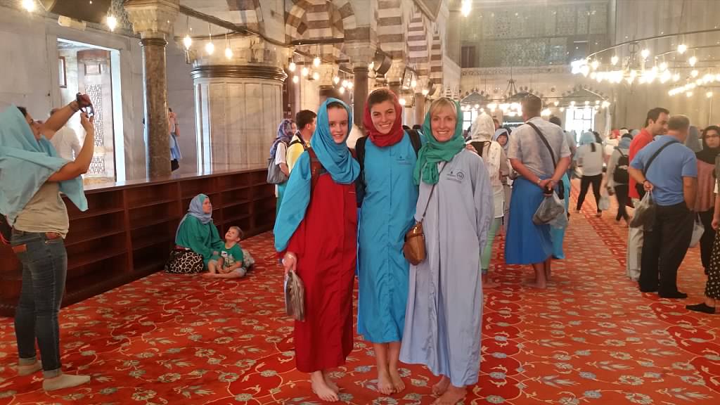 Aislinn, Ellen and Julie were covered properly in the Blue Mosque in Istanbul.