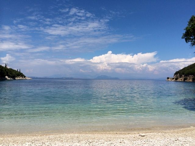 Katy, running alone, came upon this beach after her long runs on Ithaca. Yes, she went for a swim.