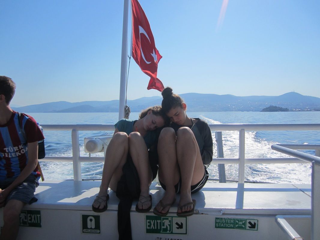 Aislinn and Ellen sought to escape sea sickness as we went from Turkey to the Greek islands of Samos and Patmos.